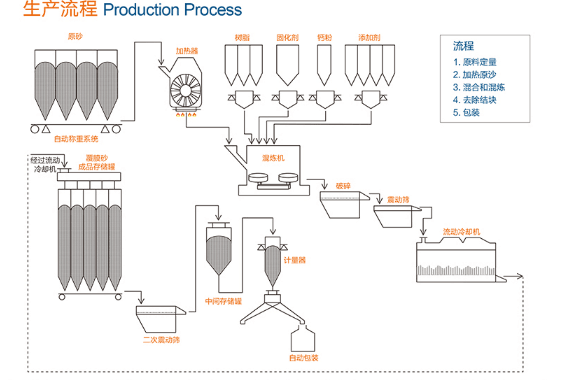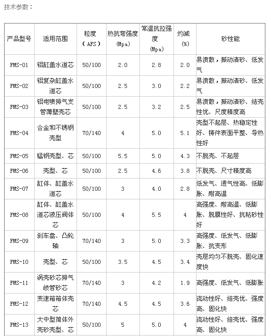 本公司生產的覆膜砂產品采用擦洗硅砂、大林砂、海南砂、培燒砂,為了滿足市場需求,引進CB砂、球形砂、莫來石砂、陶力砂、寶珠砂等,使產品具有高強度、低發氣、耐高溫、易潰散,鑄件表面光潔等特點,基本解決目前結構復雜的精密薄壁鑄件和閥體鑄件的質量技術難關。公司產品有高強度覆膜砂、耐高溫覆膜砂、易潰散覆膜砂、抗脈紋覆膜砂,為滿足現市場上新能源汽車的需求,我司成功開發鋁合金車架砂及電機殼專用砂,擁有幾十種規格,全部根據用戶要求與產品結構量身定做加工。為了保障客戶的服務,執行綠色環保循環再生的生產政策,我公司于2016-2019年斥資1650萬元升級自動化生產線設備、更新理化室檢驗設備,成為業內先鋒者。同時,截止現在我公司與三家子公司回收生產廢砂近15萬噸,改變了用戶傾倒廢砂、污濁環境之陋習,實現了覆膜砂環保綠色生產,公司與用戶實現雙贏,深受用戶信賴,環境實現了和諧。
